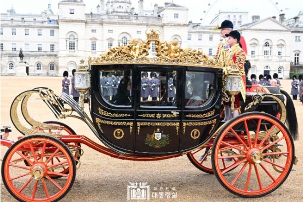 대통령은 왕실 근위대의 사열을 받은 후 찰스 국왕과 함께 왕실 마차에 탑승해 환영 오찬 장소인 버킹엄궁으로 이동했다. 대통령은 찰스 국왕에게 성대한 국빈 일정을 마련해준 데 대해 감사를 표했다. 찰스 3세 국왕은 그동안 양국 협력의 깊이와 범위가 크게 발전해 왔다고 평가하고, 이번 국빈 방문이 앞으로의 한영관계 발전에 새로운 이정표가 되기를 희망한다고 했다.