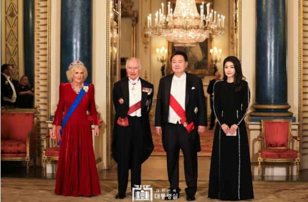 [한국뉴스타임=편집국] 영국을 국빈 방문 중인 윤석열 대통령 부부는 11월 21일 저녁 찰스 3세 국왕이 버킹엄궁에서 주최한 국빈 만찬에 참석했습니다. 만찬에는 우리 공식 수행원과 기업인, 영국의 각계 주요 인사 180여 명이 참석했다.