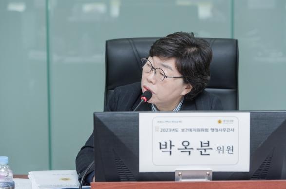 박옥분 의원은 추가질의를 통해 “서비스원 원장과 산하기관 센터장은 상담 운영비의 부족과 복지관 내 1명 정도로 배치된 상담사의 인력부족 문제 등에 대해 종사자들을 대표해서 적극적으로 경기도 등 주무부서에 강력하게 개선을 건의하길 바란다. 특히, 장기요양요원(요양보호사)의 열악한 처우 문제 등으로 실제 활동인원 부족 문제가 현실화되고 있으며, 이로 인해 노인복지현장에서는 인력 부족으로 인한 서비스 공급 부족으로 나타나고 있다. 이를 개선하기 위해서는 서비스원에서 우선적으로 돌봄 기관 및 도내 종사자들을 위해 인사노무메뉴얼 및 심리상담 창구 마련 등 처우개선을 위해 지속적으로 방안을 마련해야 한다. 노인빈곤율이나 자살률이 높아지고 있는 작금의 상황과 초고령사회의 목전에서 위기에 노출된 취약계층 노인들을 위한 맞춤형이고 선제적인 대응을 서비스원에서 적극적으로 준비하는 것이 필요하다”고 이야기했다.
