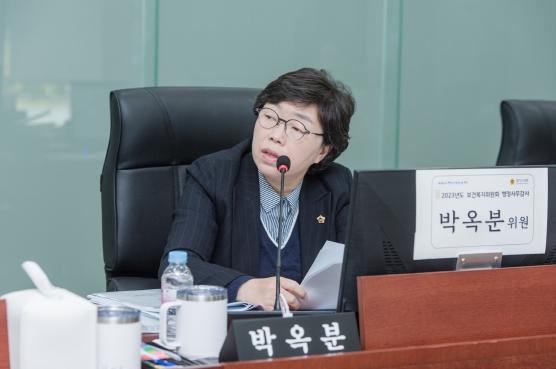 박옥분 의원은 “최근 경기연구원 홈페이지에 '2023년 경기연구원 하반기 직원채용공고'에 따르면 연구직 중 복지분야에서 복지정책과 미래 복지아젠다 분야로 2명을 채용 중에 있다. 이는 재단과의 중복연구도 발생될텐데 이는 두 기관의 연구영역이 중첩된다고 생각한다. 향후 재단에서 복지연구에 대한 고유사업을 수행하는데, 향후 역할과 정체성이 모호해질 수 있다. 또한 현 중앙정부의 복지정책 방향이 공공서비스 민영화 방향으로 추진되고 있기 때문에 재단과 사회서비스원의 역할에 대해서도 지속적인 고민이 필요하다” 며 “재단 산하기관 종사자가 근무하거나 상담서비스를 제공하고 있는 환경이 열악하며, 이는 복지서비스를 제공하는데도 어려움을 겪고 있음을 알고있다. 이에 대해서는 재단 차원에서 개선을 해야 한다”고 밝혔다.