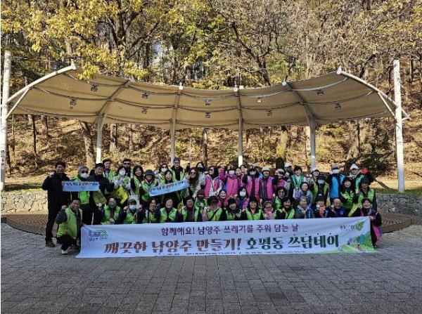 이날 행사에는 호평동 자유총연맹, 주민자치회, 생활개선회, 새마을부녀회, 지역봉사단, 걷기 지회 등 사회단체 회원과 호평평내행정복지센터 직원 등 65여 명이 참여해 평소 상습 무단투기 지역인 사가연 문화거리와 주변 상업지역 및 평내호평역 부근 거리에 방치된 생활 쓰레기를 수거했다.