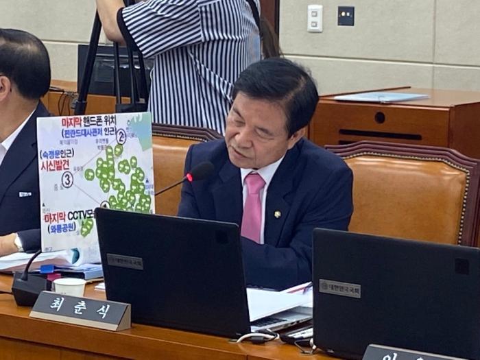 국회 행정안전위원회 소속 미래통합당 최춘식 국회의원(포천시.가평군)이 20일 국회에서 개최된 김창룡 경찰청장 후보자 인사청문회에서 고(故) 박원순 전 시장의 생전 마지막 모습이 와룡공원 CCTV가 아니라는 사실을 밝혀냈다.