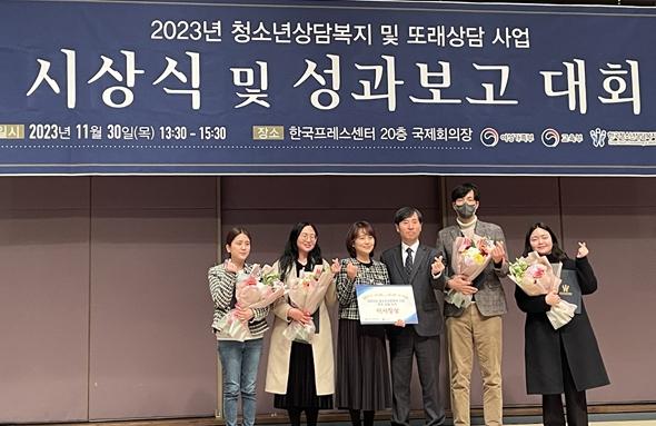 [한국뉴스타임=편집국] 구리시청소년재단 구리시청소년상담복지센터는 지난 30일 한국프레스센터에서 열린 ‘2023년 청소년상담복지 및 또래상담 사업 성과보고 대회’에서 우수사례 관련 ‘이사장상’을 수상했다고 밝혔다.