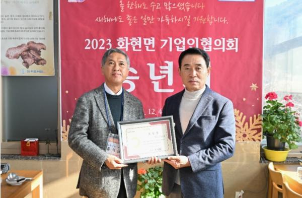 화현면 기업인협의회 민경춘 회장은 “올해 한해 기업 발전을 위해 힘써주신 기업인들의 노고에 감사드린다. 내년에도 지역에 희망과 미래를 선물하는 기업인협의회가 될 수 있도록 노력하겠다”고 말했다.
